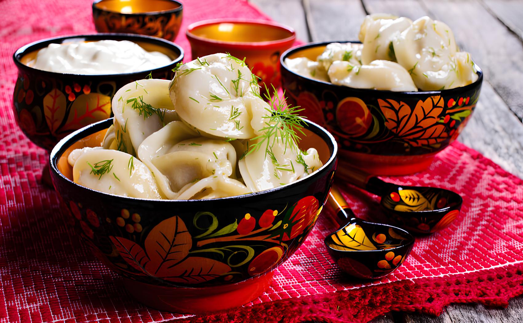 O Pelmeni é um prato tradicional da Rússia, muito popular também em países do Leste Europeu. Trata-se de pequenos bolinhos de massa recheados, geralmente com carne bovina, suína ou uma mistura das duas, temperadas com cebola, alho e especiarias. Eles são cozidos em água fervente e servidos com manteiga, creme azedo (smetana) ou vinagre. O prato é especialmente associado à região da Sibéria, onde o clima extremamente frio favorecia o congelamento natural dos bolinhos, permitindo que fossem armazenados por longos períodos durante o inverno rigoroso.
