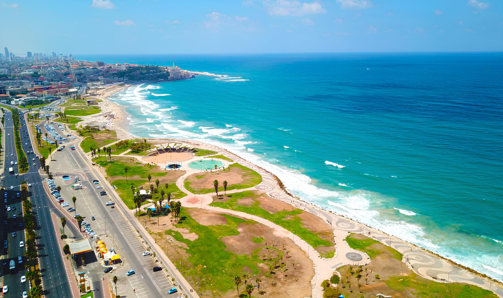 Outro espaço de grande destaque é o Charles Clore Park — localizado à beira do Mar Mediterrâneo — que combina paisagens naturais com infraestrutura urbana. O parque integra áreas de recreação, jardins bem planejados e espaços culturais, sendo um ponto de encontro para moradores e visitantes. Sua proximidade com praias famosas — como Gordon Beach e Frishman Beach — e com o bairro histórico de Jaffa reforça seu valor turístico e cultural.